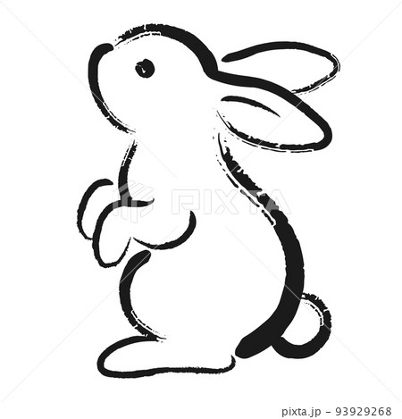 上を見て,手を顎に当てて,考えているかわいいうさぎのイラス