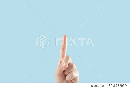 手の表現。上方向を指している子供の手。人差し指を上に挙げる