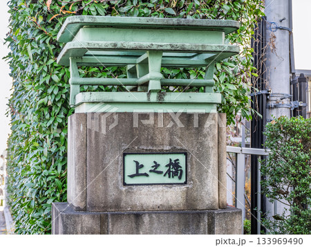 かつての仙台堀川に架けられた「上之橋」跡に残る親柱と銘板