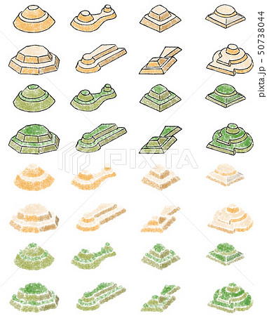 いろいろな古墳の種類のイラスト 前方後円墳や円墳などのシンプルなベクター素材 アウトライン有り