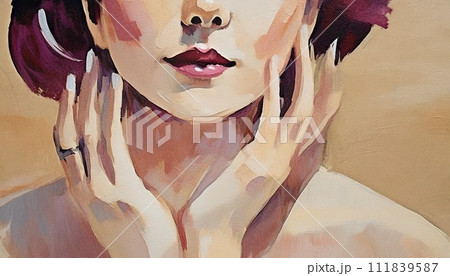 Gorgeous blonde lady touching her soft skin on cheek, studio