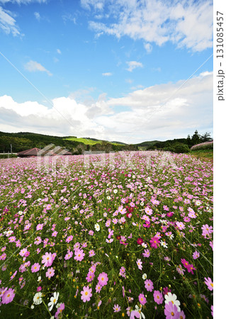 コスモスが咲く自然風景