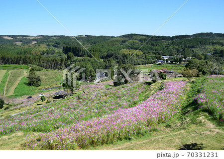 上原高原の一面に咲くコスモス