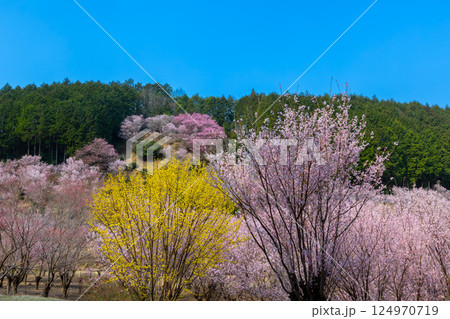 埼玉県比企郡小川町上古寺 花桃、山桜、サンシュユなどが咲く小川町の桃源郷