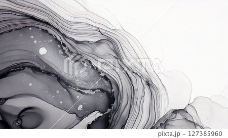 高級感のある薄くて淡いアルコールインクアート シルバー 余白 16:9サイズ AI生成素材
