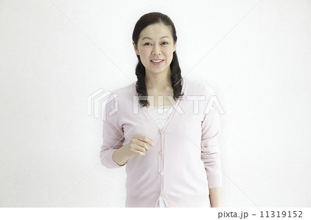 40代女性爽や語スマイル自然光ポートレイト