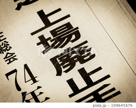 上場廃止の画像素材(写真・イラスト)は28件あります。この検索結果では、オフィス、高層ビル、ビル、新聞紙、文字、新聞、関西電力、ジェネリック医薬品、富山市、チャート、グラフ、電卓、看板、ビジネス、矢印などの絞り込みキーワードがよく使われています。 全て表示