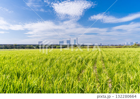 「埼玉県」秋晴れの見沼田んぼの風景 さいたま市