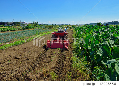 「埼玉県」里芋畑とさいたま新都心の風景 見沼田んぼ