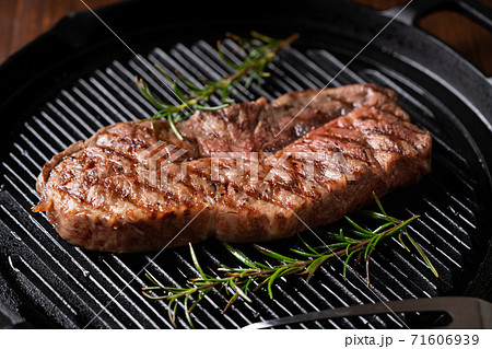 グリルで焼かれた焼肉イメージ 写真素材