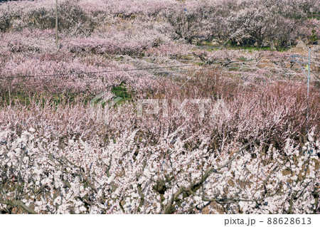 一目10万本のあんずの里 一面の見事なピンクの花々の競演