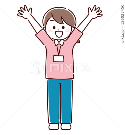 両手を広げているユニフォームを着た女性