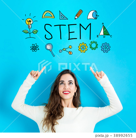 STEM with young woman looking upwards
