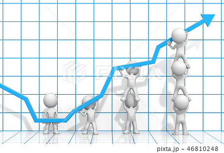 右肩上がりのグラフと一万円札 棒グラフ 折れ線グラフ