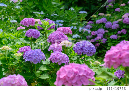 カラフルな紫陽花上磯ダム公園のカラフルな紫陽花
