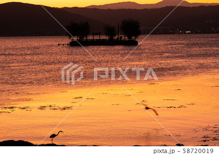 諏訪湖の夕景
