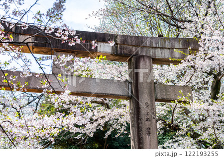 上野東照宮石灯籠と満開の桜(東京都台東区上野公園)