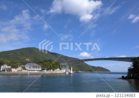 長島の旧砲台跡から眺望した上関大橋(山口県上関町)