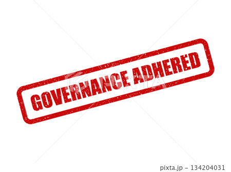 A rectangular textured rubber stamp showing the text governance adhered signifying compliance with corporate policies and standards