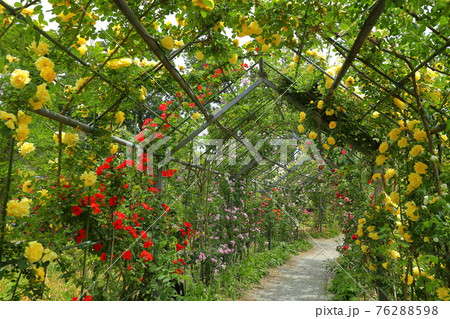 埼玉県比企郡川島町下八ツ林 平成の森公園の日本一のバラのトンネル 満開の薔薇