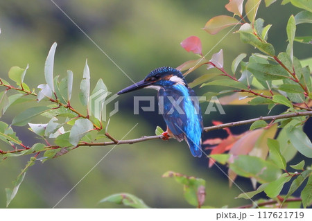 埼玉県比企郡川島町下八ツ林平成の森公園 蓮池の枝にとまるカワセミ