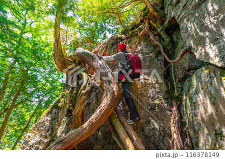 静寂の名峰、百合ヶ岳へ登る登山者(奈良県吉野郡川上村下多古)※作品コメント欄に撮影位置