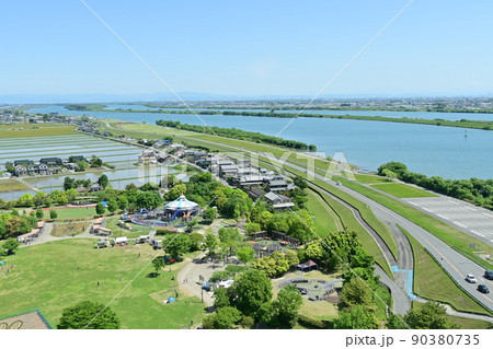 国営木曽三川公園の展望タワーからの展望と千本松原
