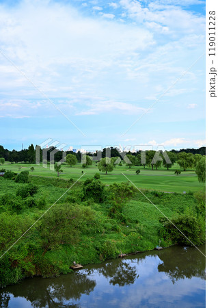 青空の夏空とゴルフ場の風景 上江橋からの眺め