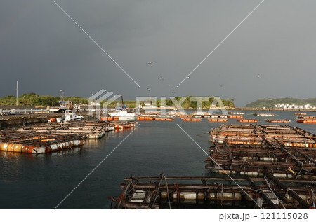 養殖筏が並ぶ下関の唐戸港