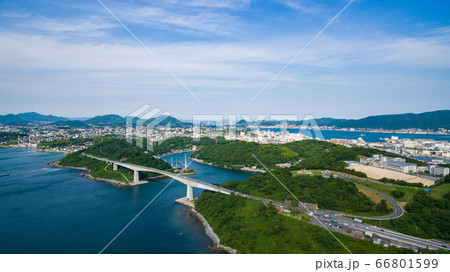 山口県下関市 道の駅北浦街道ほうほくから眺める朝の角島大橋