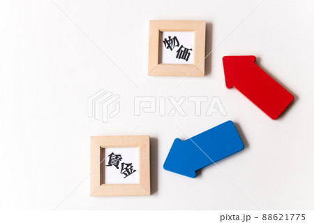 給与明細書と矢印 二極化 上向き 下向き 矢印 両極化