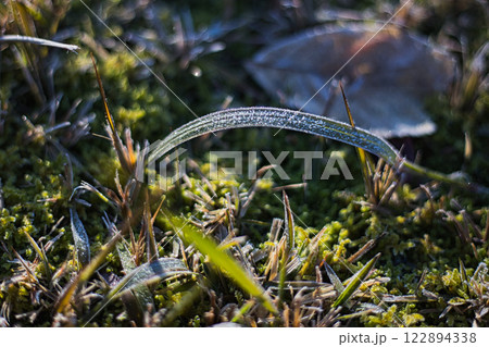 初氷が芸術的な市立美術館の朝