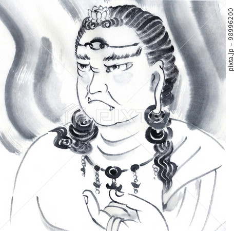 不動明王の上半身 水墨画