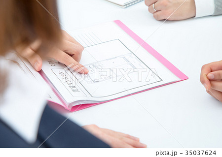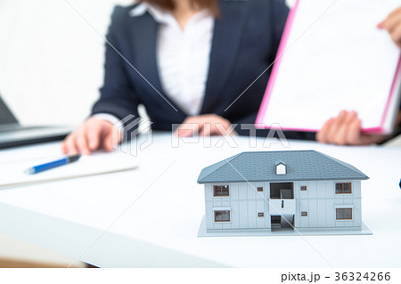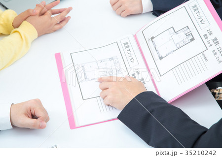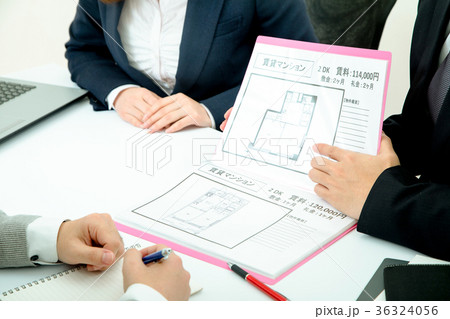 不動産屋さん 賃貸マンション 説明員 物件紹介 家探し 写真素材 お客様 ボディーパーツ