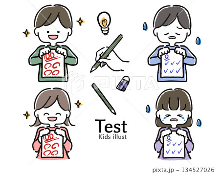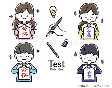 テストに合格した子と不合格だった子のイラストセット