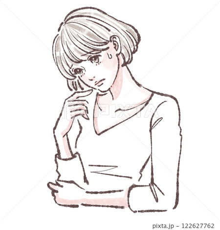 ため息/落ち込む/悩み/悲しい/体調不良/女性・女の子のイラスト素材