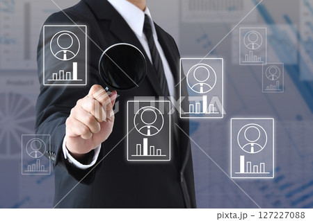様々な人材の特性を虫眼鏡で分析するイメージ画像