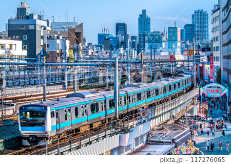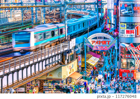 日本の東京都市景観 不快指数86…。猛烈な暑さが続くが外国人観光客らで賑わうアメ横…=8月9日