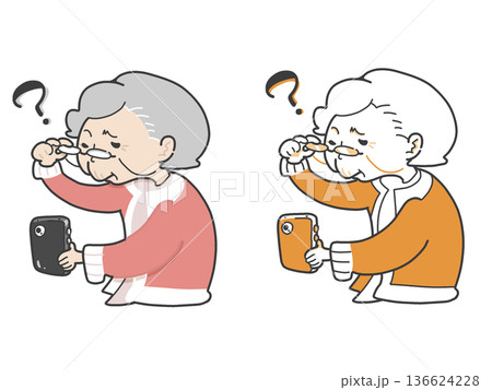 スマートフォンの操作に戸惑う高齢者のイラスト