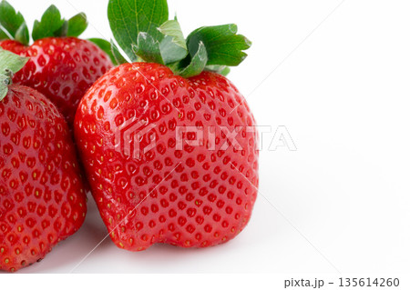 白背景に先端が平たい甘いイチゴ(とちあいか)