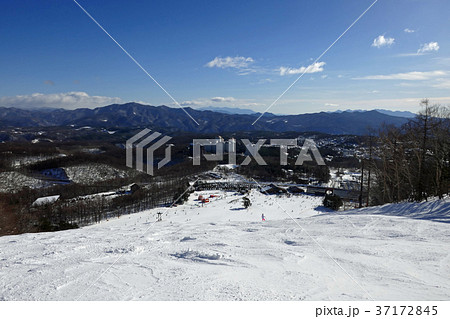 草津国際スキー場天狗山大斜面上部から見るベース付近と温泉街