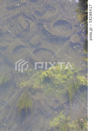 不法投棄ゴミと、水草繁茂の芝川