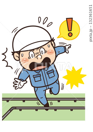 足元の配管やパイプにつまずく工場・現場の作業員イラスト|不安全行動・不安全状態・労働災害