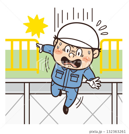 高所から転落してしまう工場・現場の作業員イラスト|不安全行動・不安全状態・落下事故・転落・労働災害