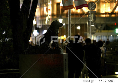 日本の東京都市景観 3度目の宣言初日。街頭ビジョン等が消え暗闇に沈むハチ公前…。路上飲みも…=25日