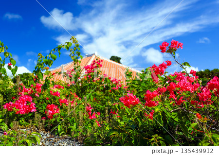 沖縄 琉球古民家とブーゲンビリア