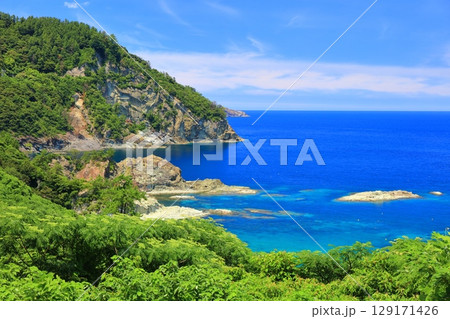 【島根県】晴天の那久岬から見た西ノ島と中ノ島(隠岐の島 島後)