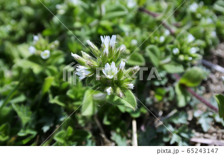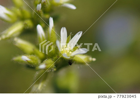 オランダミミナグサ 花弁の先が割れた白い極小の花とその蕾