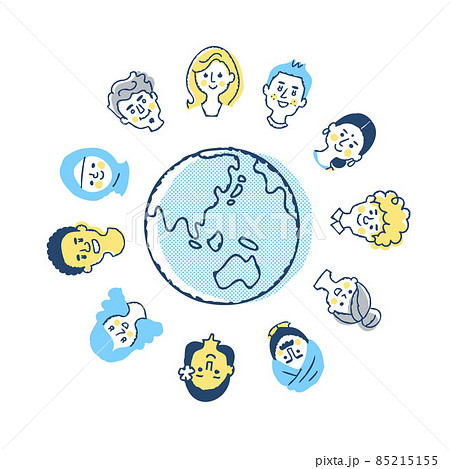 地球とさまざまな人種の顔