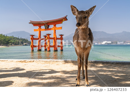 《広島県》宮島厳島神社・大鳥居と鹿